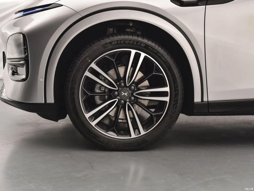 实拍车型配备20英寸双色多辐轮圈,造型设计有明显的运动风格。轮胎也采用主打运动取向的米其林PILOT SPORT EV(竞驰EV)系列,规格为255/45 R20。