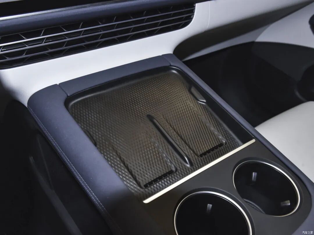电子怀挡式换挡机构令中控T型区的空间布置更加灵活,前方有放置两个手机的空间,后方还有两个杯架。