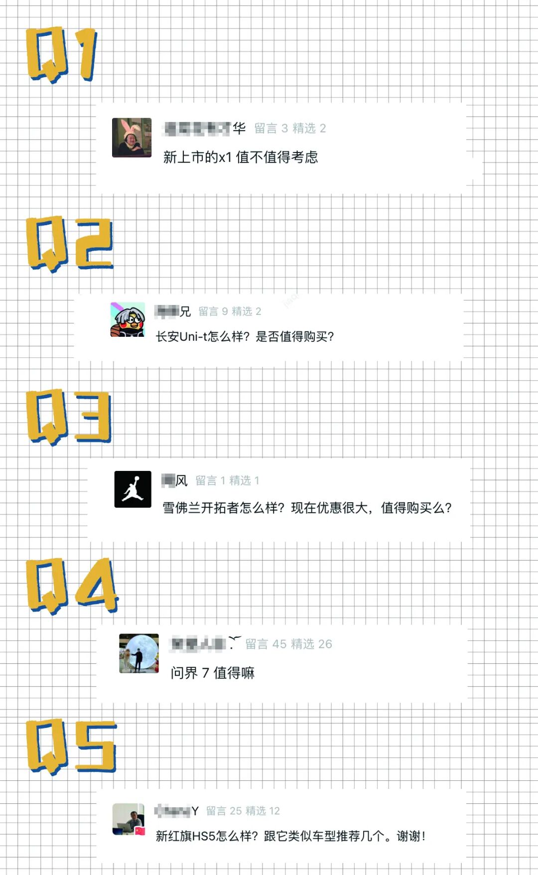 各位看官如有关于购车、用车等一切汽车相关的问题都可以私信或留言给我们,被选中的问题我们会私信告知您,此后会以文字形式集中回答!各位的问题,我们也会开放出来,大家可以一起讨论与回答~
