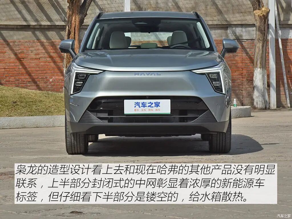 哈弗枭龙的前脸采用了纯电动车使用较多的封闭式前脸,仅保留了下方的进气口,造型更显简洁。此外,“7”字形大灯也十分抢眼。侧面双腰线的设计,进一步体现该车的力量感。另外,车顶的设计微微向下倾斜,营造出轿跑的设计风格。