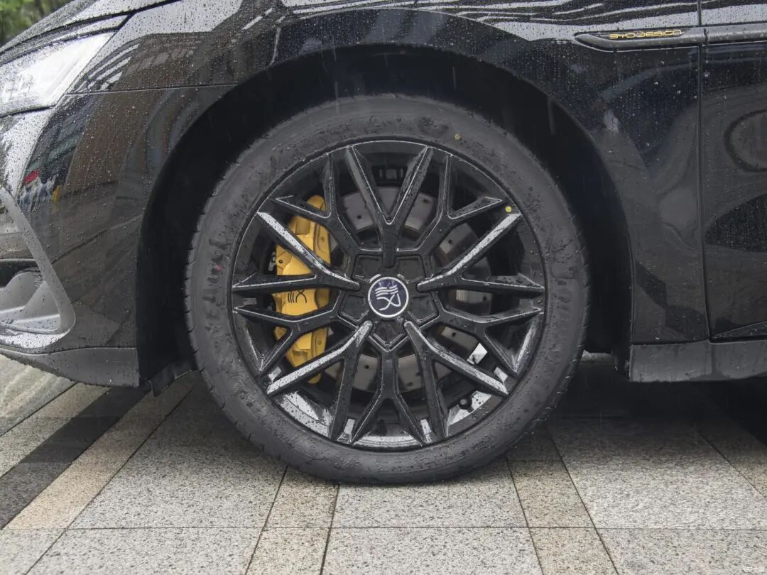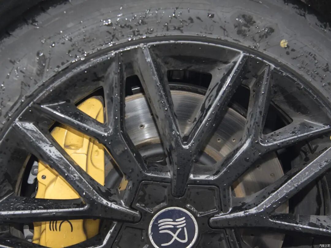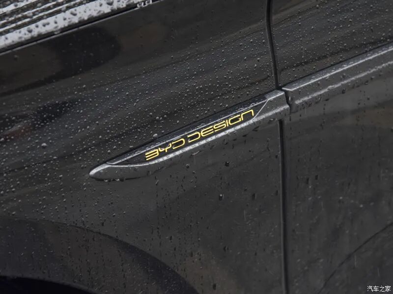 然后刹车卡钳则采用了金甲黄配色,包括车身侧面标识,门把手上的“汉”字都采用鲜明的黄色。身披黑甲,手持金戈,气场到位!