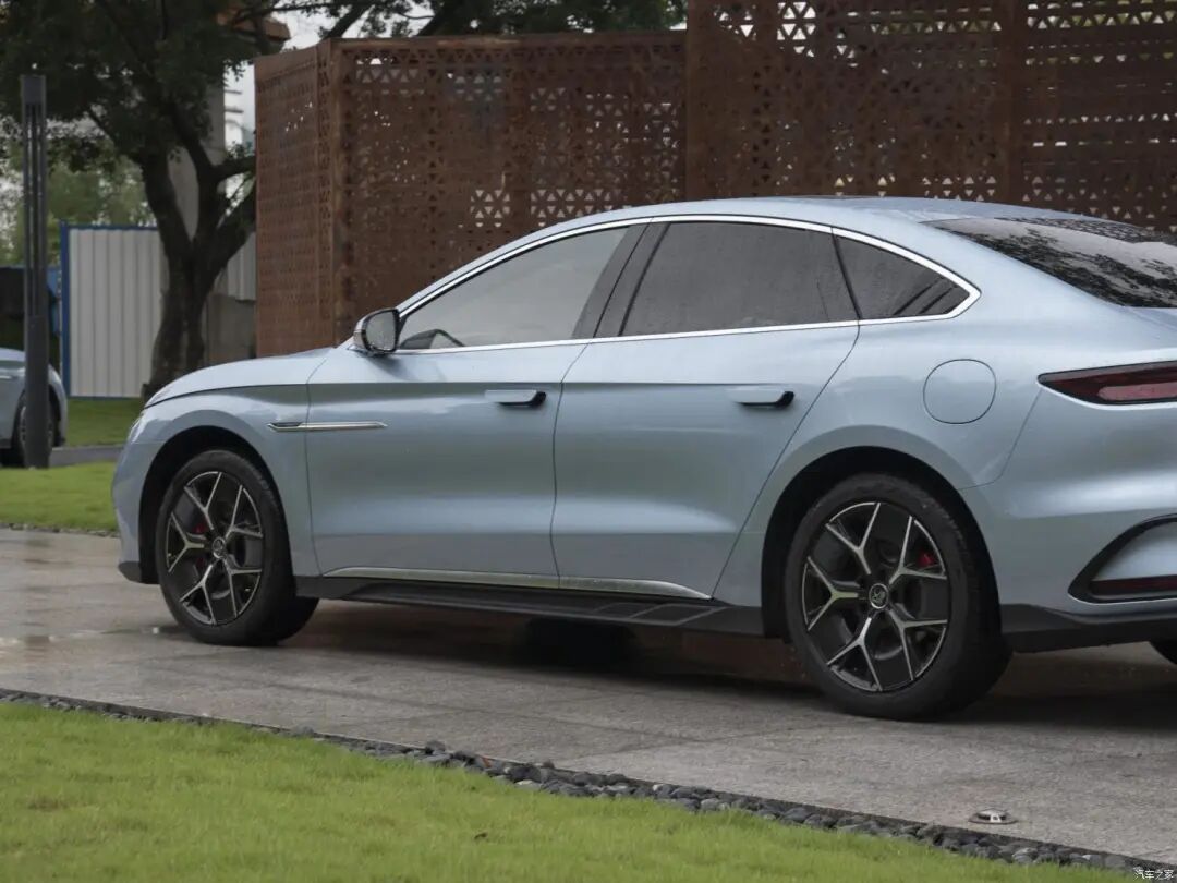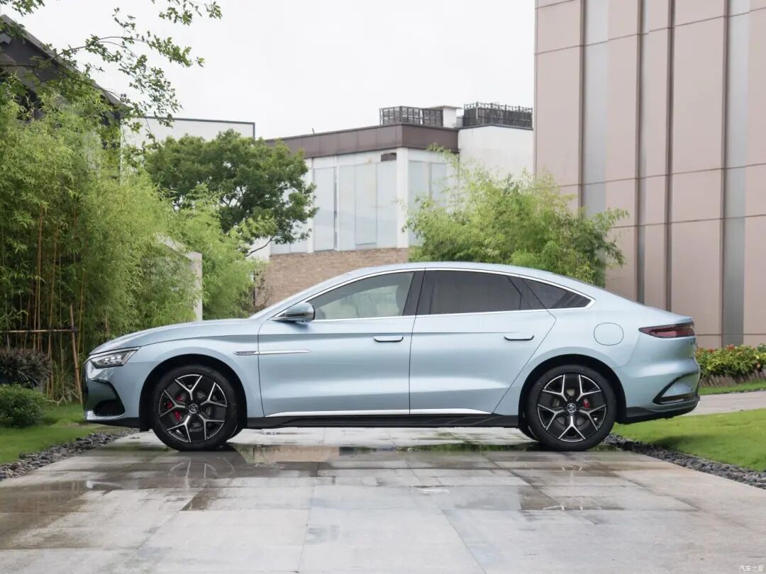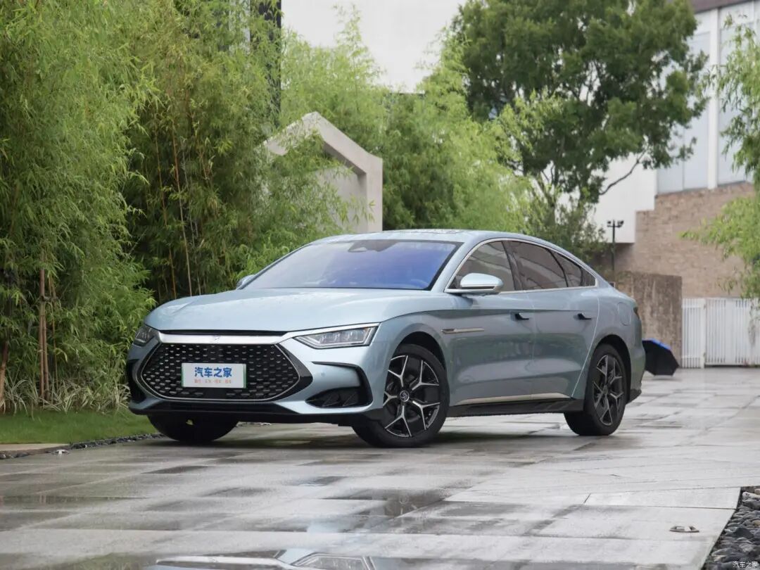先来看看汉DM-i冠军版,外观自然不是重点,但和其它冠军版车型一样,带来了新的车身颜色,冰川蓝车色。