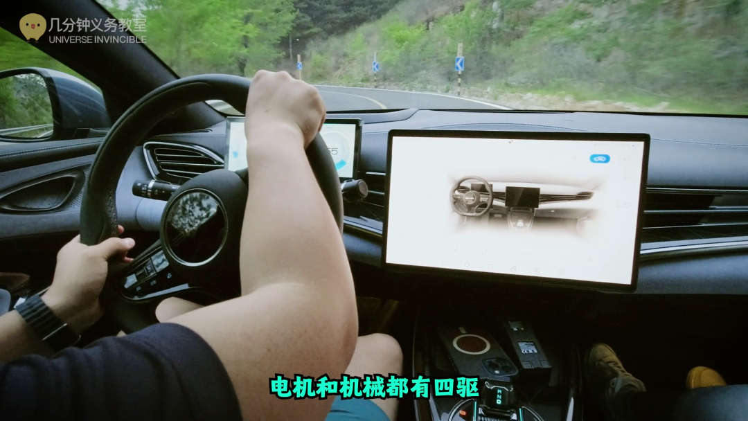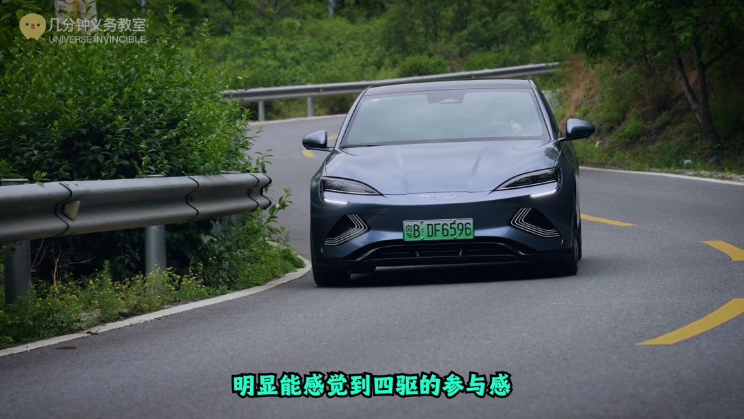 这辆海豹前悬采用了双叉臂,而且据说底盘用料也相当下血本,侧倾这种基本功是肯定没问题的,过弯时车身姿态非常稳妥,我们拍的这辆是四驱,前后双电机,电机和机械都有四驱,但是电四驱的实现要简单的多,也要更灵活。