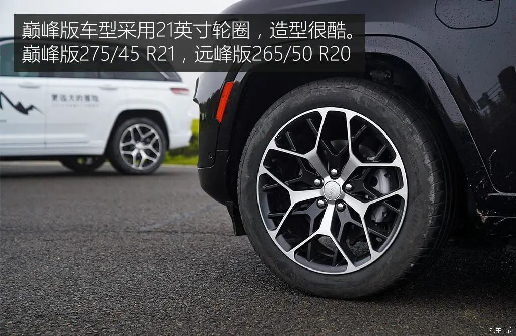 来到侧面,一眼就能看出是一台Jeep,粗犷夸张的轮眉就是那么经典和直白,笔直的腰线也同样直白的刻画出硬朗,较低的腰线和宽大的车窗也同样是硬汉气质。而这次最大的新意在上半部分,全新大切诺基4xe远峰版车型首次选装了亮黑色车顶,而巅峰版车型则标配亮黑色车顶,有点肌肉男穿上了修身西装的帅气。