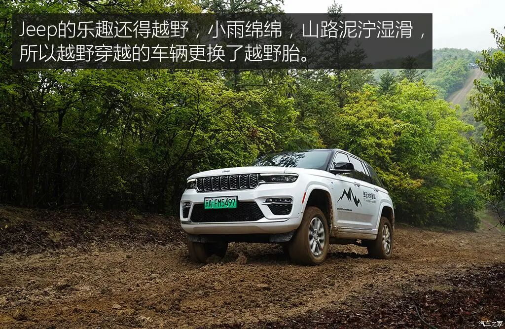 公路是够爽也够舒服,但作为一台Jeep,铺装公路可不是它内心的向往,还得去撒野。试驾当天小雨绵绵,山路泥泞湿滑,所以越野穿越的车辆更换了越野胎。然后空气悬架提供了五级高度调节,Selec-Terrain路况模式也提供5种模式。这还不够,大切诺基4xe标配主动式双速分动箱,具备越野4-LOW低速四驱模式,提供2.72倍扭矩放大,攀爬比47.4:1。
