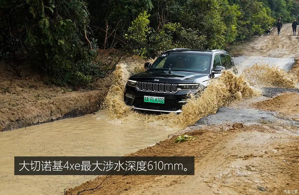 有了上面提到真功夫,开着大切诺基4xe上山就是件简单的事情,小坡小沟给点油搞定,就算轮胎打滑,四驱系统也能很快给出对策。而实际体验下来,4xe 插电混动系统对于越野而言更给力,电机高效直白的扭矩真的会给越野加分,有时候给点电和顶着油的区别还是很明显,甚至还可以纯电模式下应付一般的障碍。