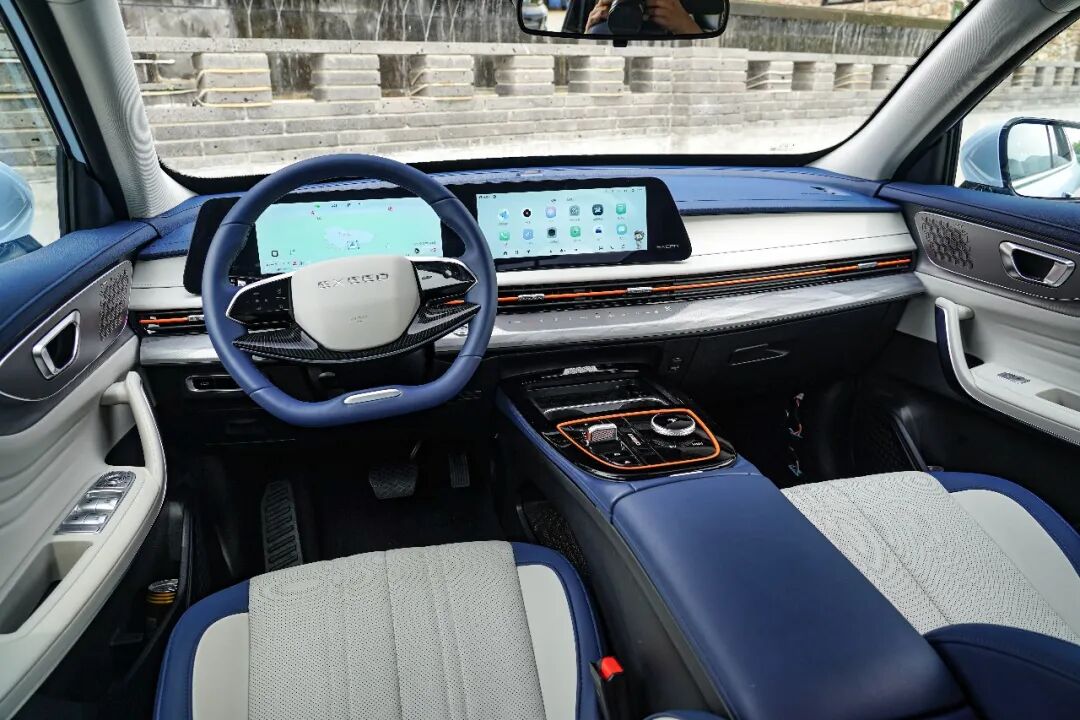 追风车内的整体设计很主流,也够时尚,不过蓝白配色皮革带来的高级感是相当真切的,而橙色饰条又带来了几分活泼。大联屏在现如今已经不能给人带来新鲜感了,但也让人挑不出毛病。总的来说,这套内饰还是很具惊喜的。