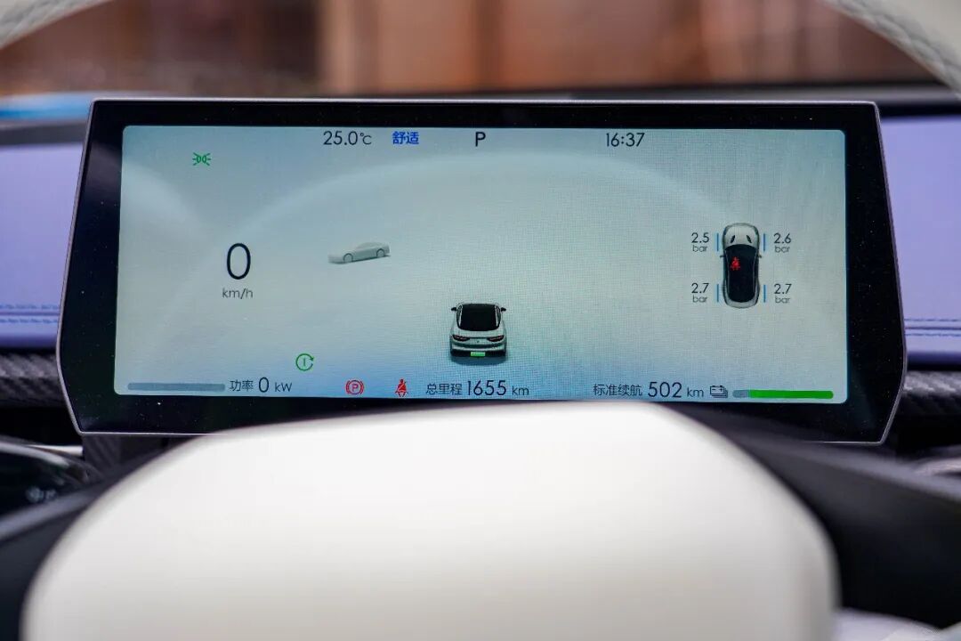 这套内饰,如果你用新能源车型的标准去审视它,那没得挑,与其他新能源车没有太多不同,两块大屏取代了绝大多数的物理按键,这对于新能源车型来说很容易被接受。但多了跑车身份后,总会让人觉得少点什么。