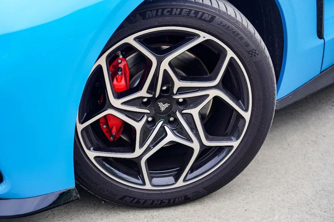 19英寸轮圈造型有些复杂,或许使用简洁的多辐条样式会与车辆本身更搭,试驾车轮胎规格够高,4条米其林PS4,数据为245/45 R19。