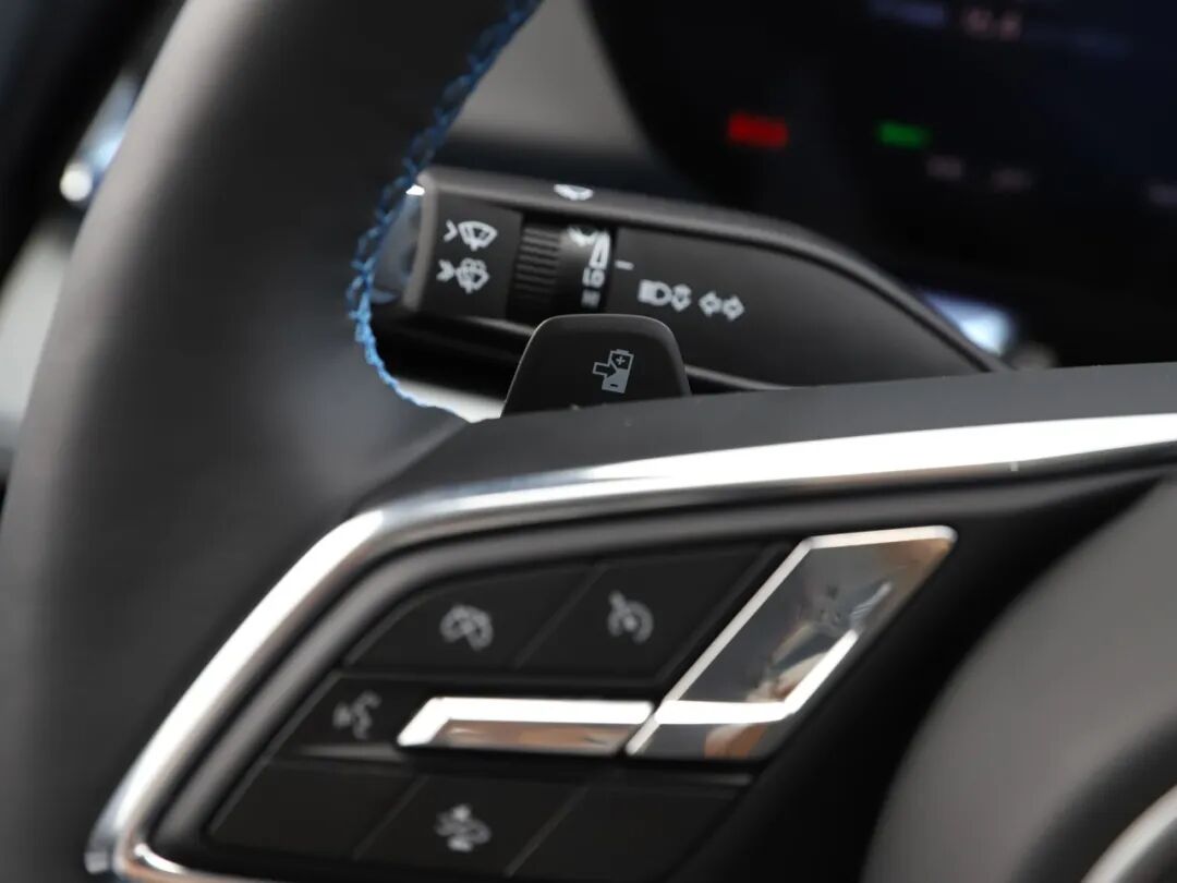 此外,在方向盘左侧后方设置有动能回收拨片,拨动就可以触发动能回收功能。需要注意的是,有些新能源车型的动能回收拨片,拨动不同的次数会调节动能回收强度,别克E4的拨片并不是这种工作逻辑,一直“回搂”拨片,动能回收会一直工作,低速时甚至可以将车刹停。