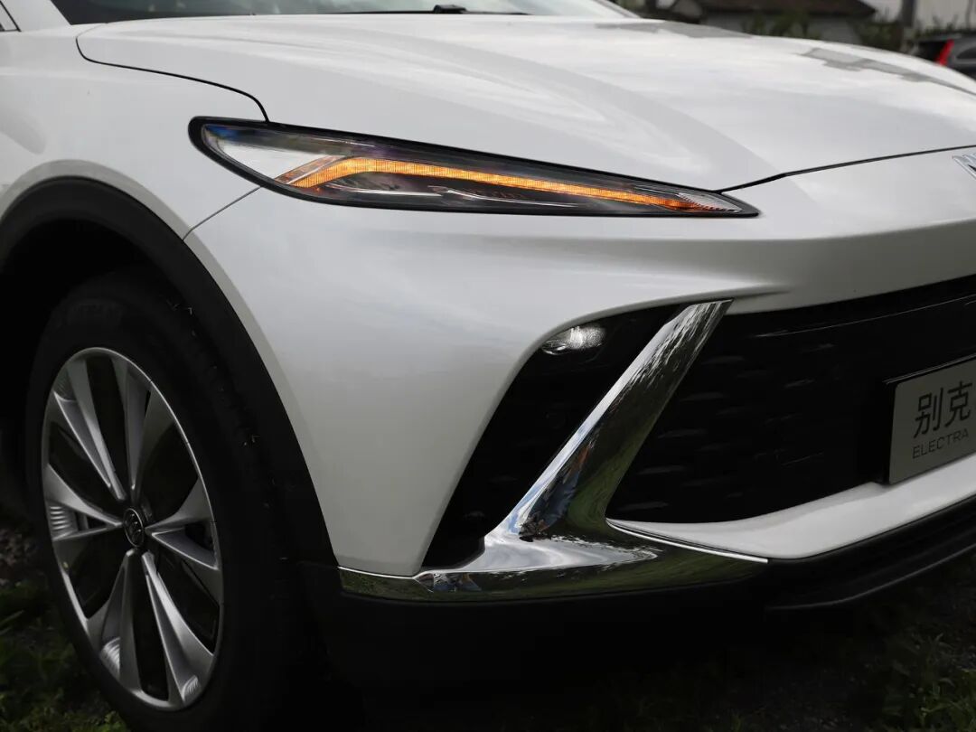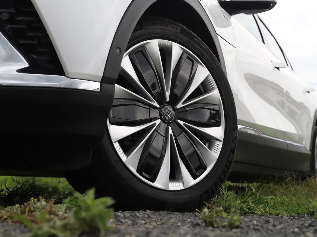 侧面也具有不错的辨识度,视觉感受非常饱满。隐藏式门把手有助于降低风阻,前翼子板处的充电口加上了别克品牌标识更显品质感。黑色侧裙和轮眉在视觉层面令车侧更显纤薄修长。