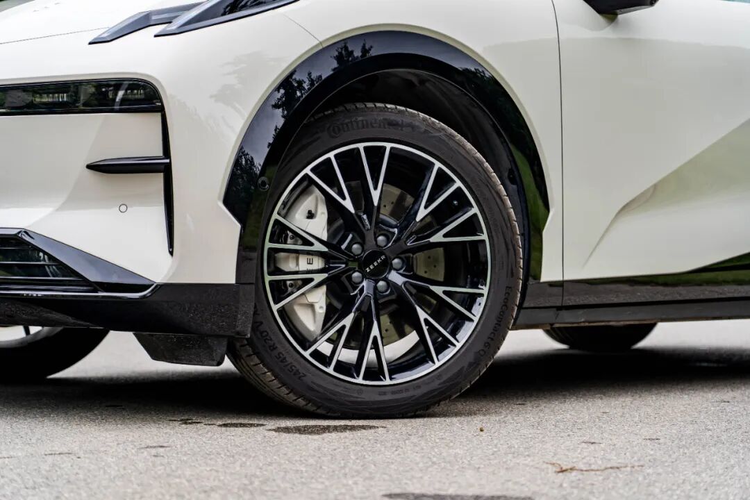 20英寸锻造轮圈+前Akebono四活塞卡钳+大尺寸打孔盘+马牌EC6Q 245/45 R20轮胎套装的选配价格为1.6万元。大尺寸的轮圈有着非常饱满的视觉效果,四活塞卡钳更是有着非常夸张的尺寸,将轮圈内部塞得满满当当,性能范儿拉满。