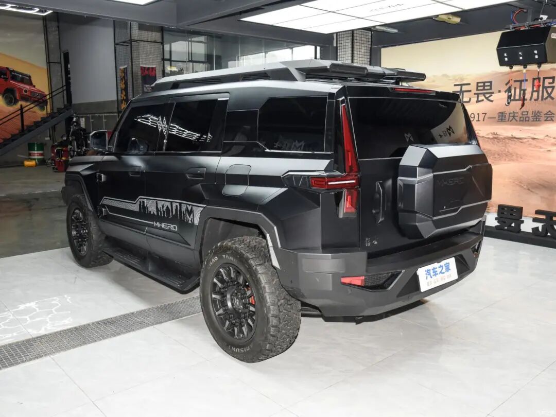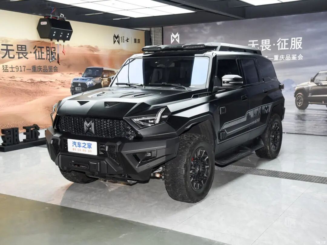 外观方面,作为回顾,猛士917讲究的是“能硬皆硬”的设计,我们几乎找不到任何圆润的线条。车身尺寸方面,新车长宽高分别为4987/2080/1935mm,轴距2950mm。动力方面,整车搭载四电机驱动,超1000马力的动力输出,0-100km/h加速4.2秒,这让爬坡、冲沙等越野场景有着更强的持久动力。