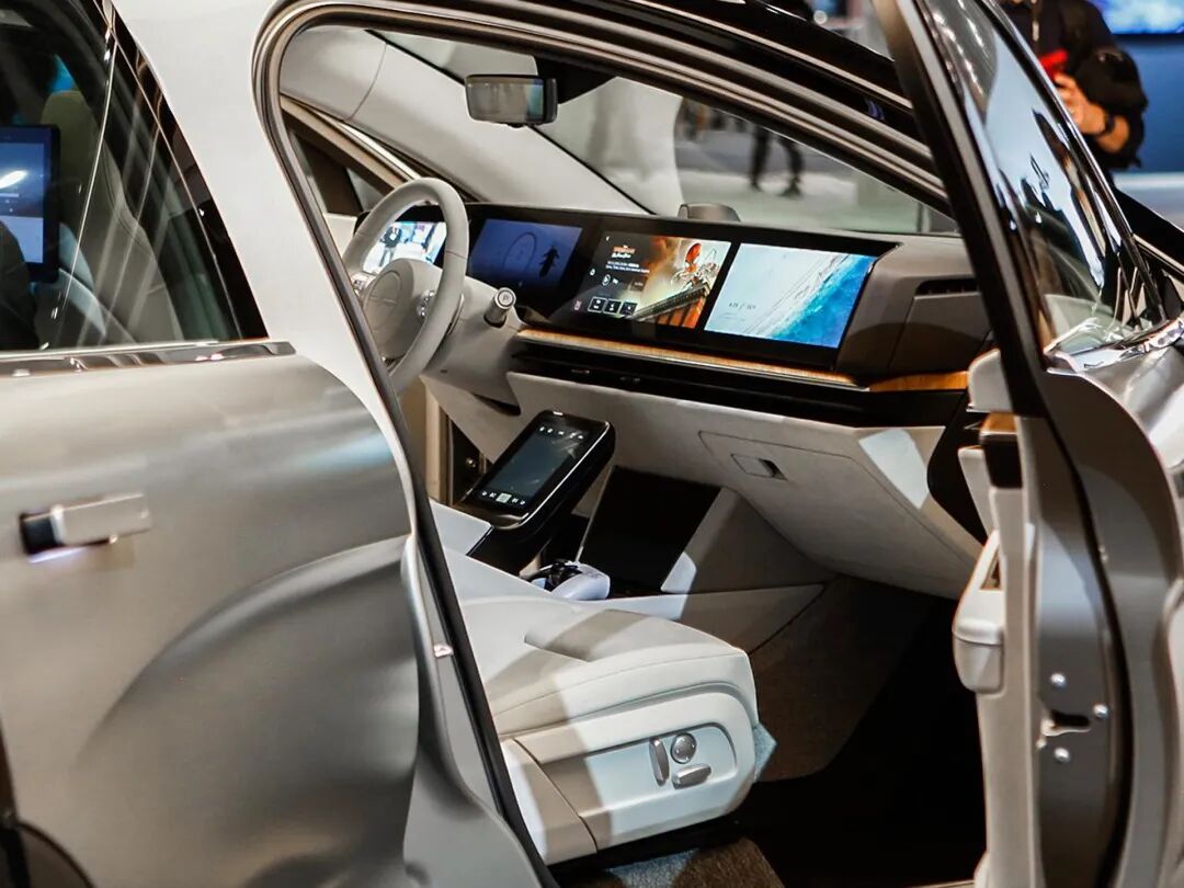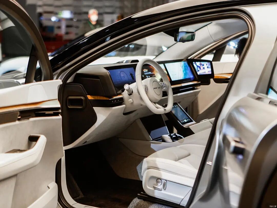来到车内,这套设计很难让人相信这是一台概念车,因为诸多元素在现阶段的量产车型上都可寻见。在屏幕数量方面概念车有着绝对优势,前排拥有3块大屏、3块替代后视镜的屏幕和中控台下方的车辆控制屏,共7块屏幕。此外,后排还有两块供乘客使用的大屏,车内屏幕数量共计9块。
