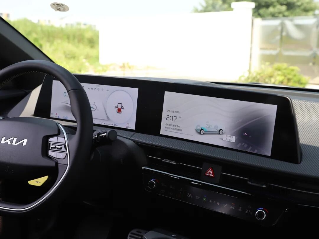 相比于摩登前卫的外观而言,EV6的内饰设计稍逊风骚。中控台采用环抱式设计而且下方与“T型区”并未连接形成了悬浮式的效果,上述设计可令内饰更显敞亮一些。