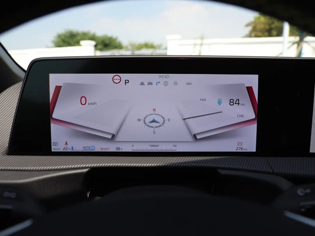 EV6 GT的动力储备完全可以用过剩来形容,在封闭赛道中时速达到160km/h之后再加速也没有疲软的感觉,还会给你一定的推背感。方向盘手感相对沉稳,指向性出色而且保留有一定路面反馈。方向盘后方拨片可以调节动能回收等级,调整至最大时便会进入单踏板模式。前对向四活塞刹车卡钳加上动能回收功能,虽然动力强悍但依然可以刹得住。
