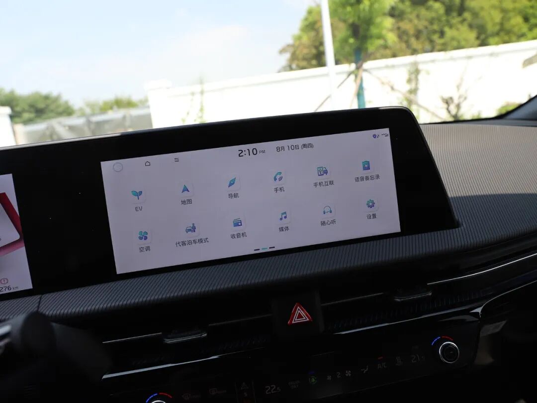 双联屏设计如今比较常见,多功能方向盘采用双辐平底设计,底部的驾驶模式以及GT模式按键非常方便而且很有运动感,后方拨片可以调节动能回收强度。