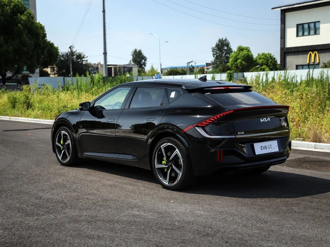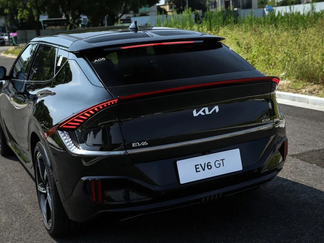 起亚EV6 GT车侧比例协调动感,造型摩登前卫。车顶呈缓降趋势向后延伸并与镂空扰流板衔接,向外凸出的后翼子板对提升力量感大有裨益,侧裙的上扬线条与延伸至侧面的尾灯组形成“隔空呼应”,设计感满满。虽然EV6是一款SUV车型,但低重心设计令其呈现出“小钢炮”车型的视觉观感。
