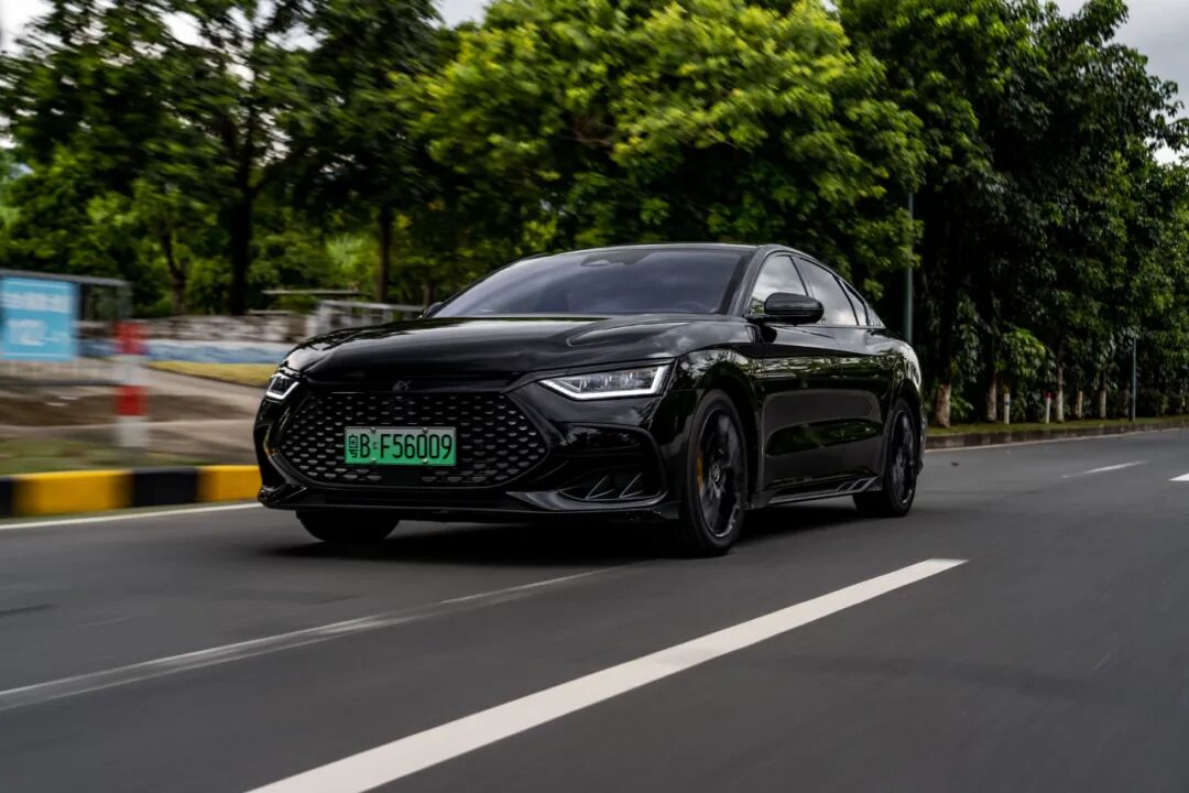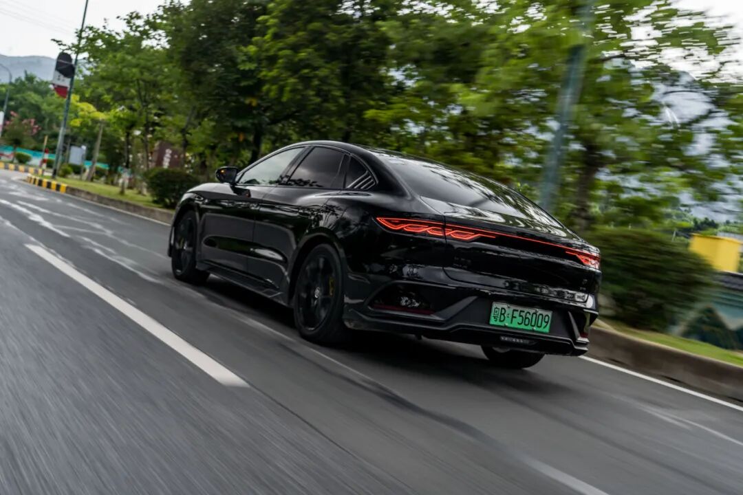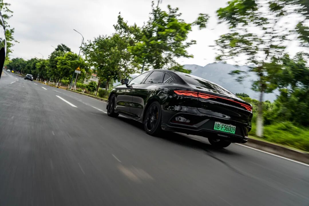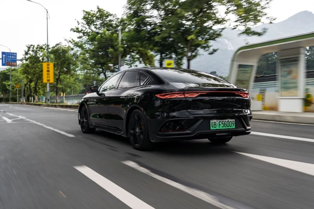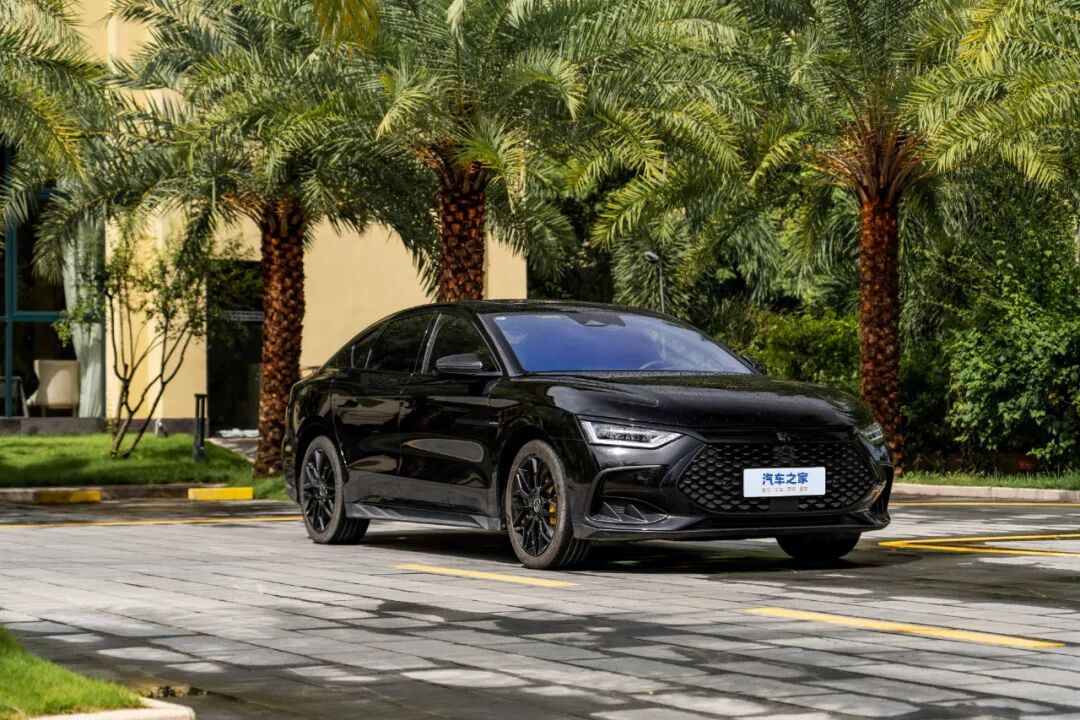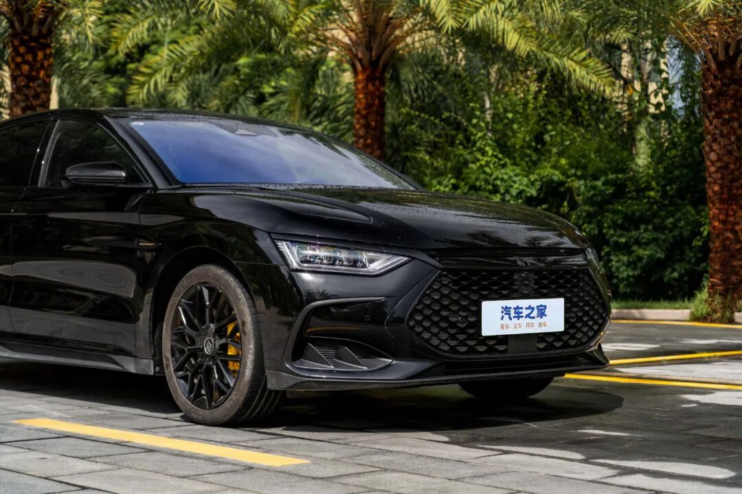 先来简单回顾一下外观与内饰设计,本次实拍的版本为汉DM-p战神版,售价28.98万元。一身黑漆搭配全车细节黑化与黄色点缀,令其成为汉家族中最酷的存在。