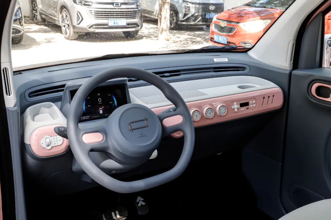 进入车内,新车有着非常简约的风格,毕竟对于一台微型车来说,不能要求的太多,个性新颖才是第一要务。内饰配色方面,小马提供蒂芙尼绿、落樱粉、琉璃青、晴空蓝、时光金等5种内饰颜色。