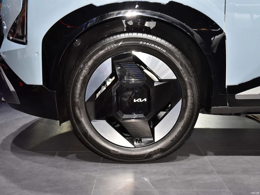 双色轮圈做成了一个类似于飞镖的图案,与整车风格相契合。与大多数新能源车一样,轮圈表面平整光滑,并且采用了近乎封闭式的设计,对降低风阻能起到一定作用。