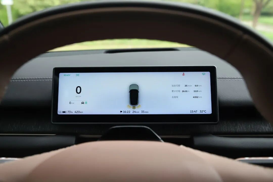 10.2英寸全液晶仪表界面简洁,能显示行驶数据、驾驶辅助以及感知系统识别到的交通参与者,HUD抬头显示采用 9.3 英寸画面,显示效果清晰,可显示行驶数据、导航等内容。
