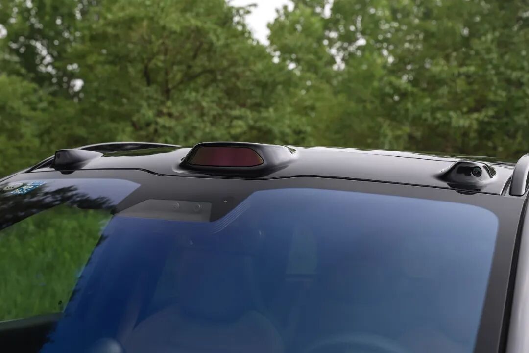 瞭望塔式传感器布局是蔚来NT2.0平台车型的一大外观特征,中间是激光雷达,两侧是800万像素高清摄像头,这种高位布置传感器的形式可以有效越过遮挡,站得高,看得广。