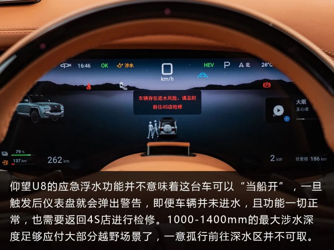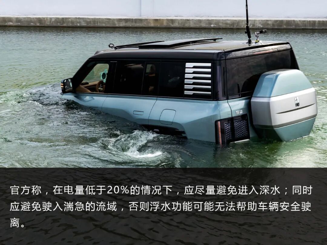 即便如此,对于准车主而言也不兴一提车就往水里扎。一旦触发应急浮水模式,车辆就必须返回仰望售后进行全方位的检查,当然这并不会导致车辆成为“水泡车”而失去质保。