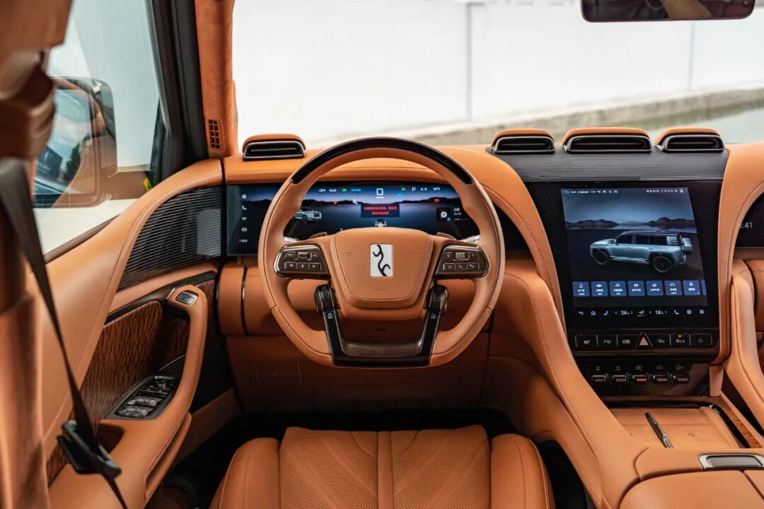 动力方面,新车基于易四方技术平台打造,配备2.0T增程式发动机,采用四轮四电机,总功率达到1197Ps,可实现最长1000km的综合续航里程(CLTC工况)。此外,新车还提供爆胎继续行驶、原地掉头、露营调平等功能。