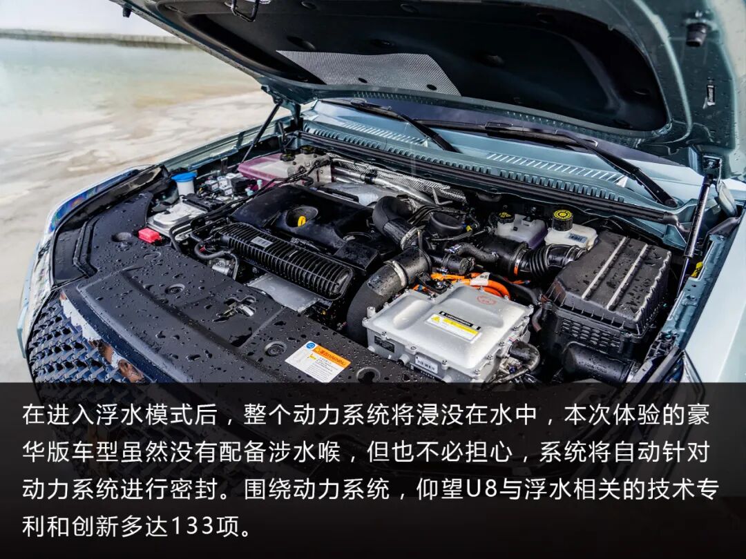 围绕动力系统,仰望U8与浮水相关的技术专利和创新多达133项。新车优化了发动机系统电控开闭阀,发动机进气阀会自动关闭防止进水,浮水时炭罐阀门也会直接关闭。