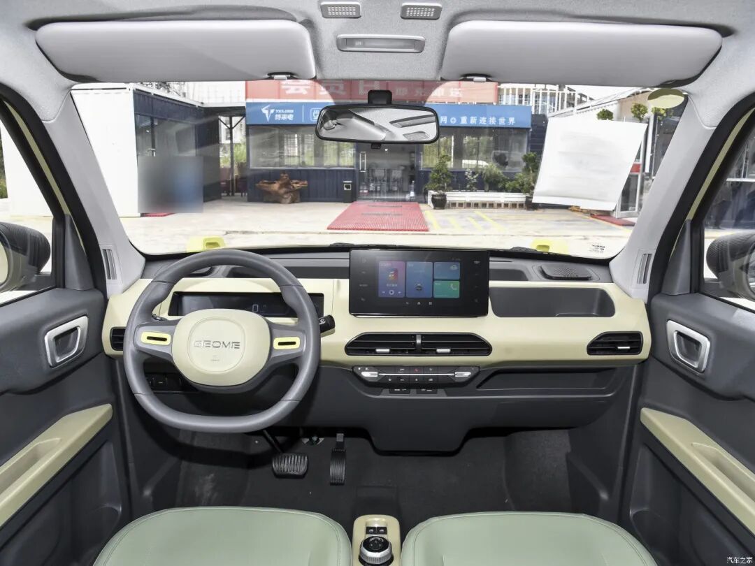 车内整体设计就比较简洁了,考虑到5.39万元的售价,所以要求也不要太高。配色方面提供了果敢绿、真我白两种方案,都有着较强的个性化属性。另外,副驾驶前方还配备了一个储物格,装一些票据还是很方便的。