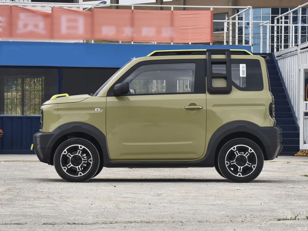 车身侧面看起来短小精悍,车身尺寸方面,新车长宽高为3135/1565/1655mm,轴距为2015mm,定位为微型电动车。麻雀虽小但五脏俱全,它有着丰富的设计元素,例如双色的行李架、路虎卫士同款的的侧梯、宽大的黑色轮眉等等,形成了不错的视觉观感。