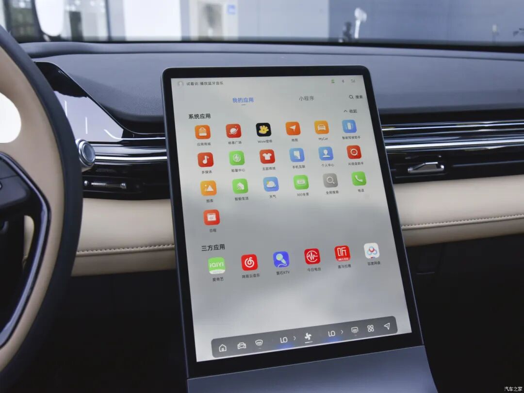 OS系统,并由高通骁龙8155芯片提供算力支持。集成了语音助手、手机互联、多媒体、导航、全景影像、车辆设置等功能和爱奇艺、网易云音乐、喜马拉雅等App。