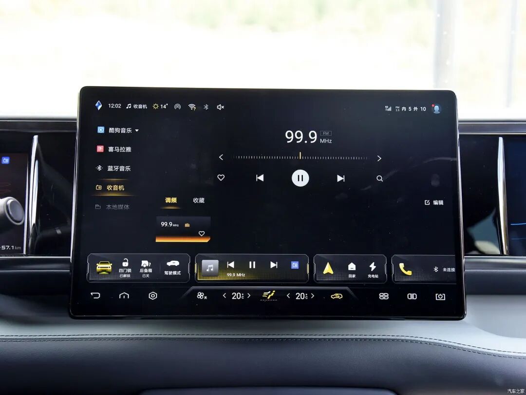 最近一段时间接触了不少比亚迪的新车,我发现这些车的车机系统都取消了调频收音机,只能用网络电台功能,来到这台豹5,调频收音机终于出现了,毕竟是台定位到处跑的车,万一哪天跑到网络信号不好的地方或者是出国了,网络电台可不好使,这时候调频收音机才是最可靠的功能。