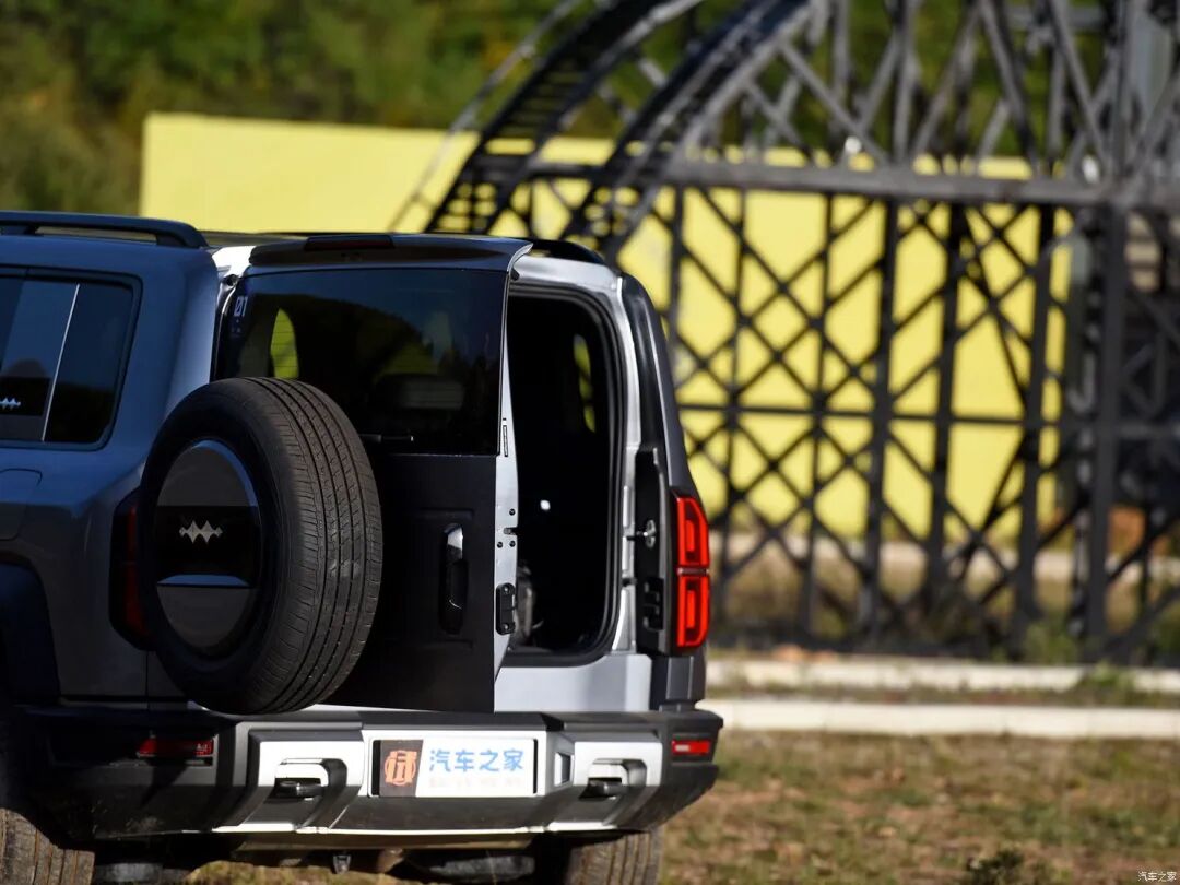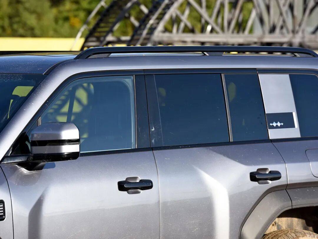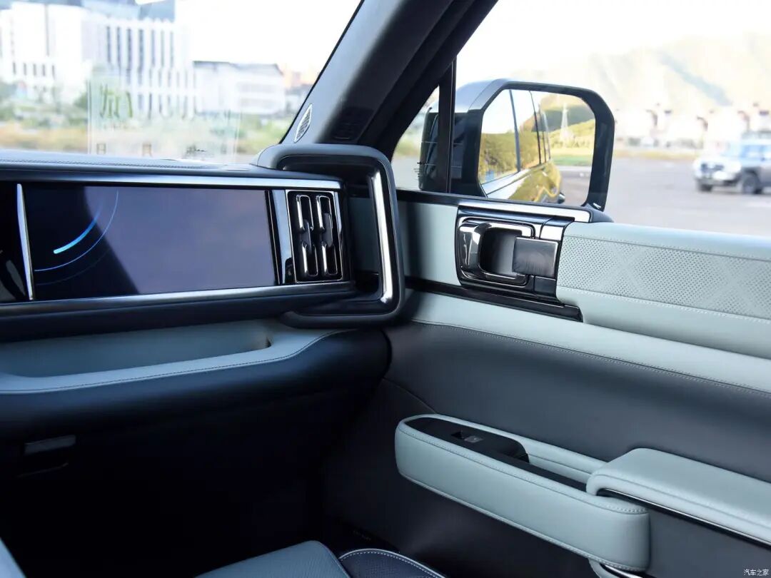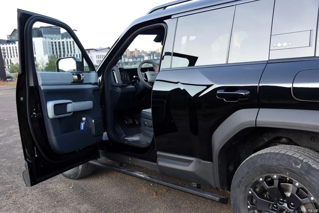 豹5的门把手采用传统样式设计,突出硬朗风格,无钥匙进入功能只能说是最基本的招数了,在豹5上面蓝牙和NFC钥匙都能轻松玩转。车顶行李架是全系标配,固定踏板是标准配置,用户可以选装电动踏板。后排隐私玻璃也是全系标配,不错。