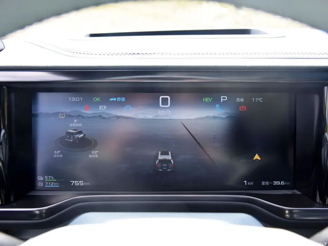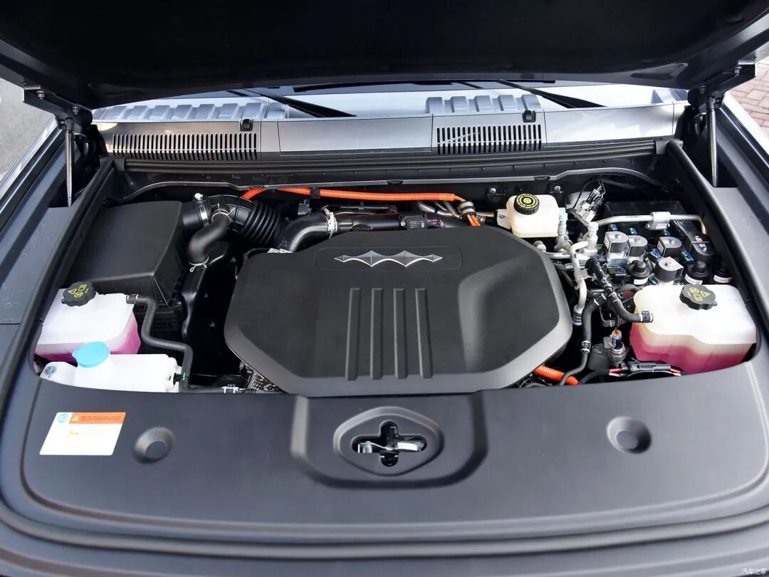 动力方面,豹5是首款比亚迪全新DMO超级混动越野平台的车型。搭载了由1.5T发动机和前后双电机组成的四驱系统。其电机的峰值功率为:前200kW/后285kW,发动机最大净功率为135kW,加92号汽油就可以了,这很硬派越野,整套动力系统的总功率为505kW,总扭矩760牛·米,官方公布的0-100km/h加速时间为4.8秒。