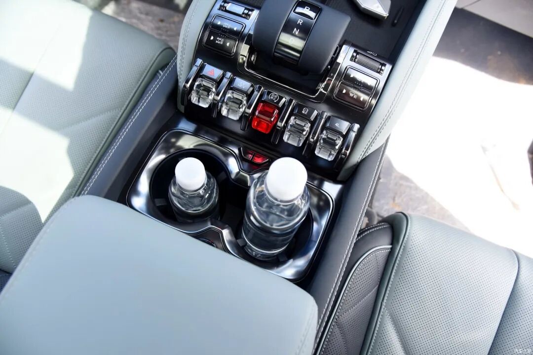 豹5的储物空间表现十分抢戏,可以说是处处有惊喜,挡把后方的杯架是可以升降的,瓶子不管高矮都能给它的最安稳的站姿;挡把下方的储物格不仅够大,这里还有丰富的电源接口,尤其是这个储物格的后方,没想到还藏了个USB Type-C接口,够隐蔽的。最后就是扶手箱了,如果你买的是中高配车型,那么这就是个冷暖冰箱,非常好用,可调节的温度范围挺大的。