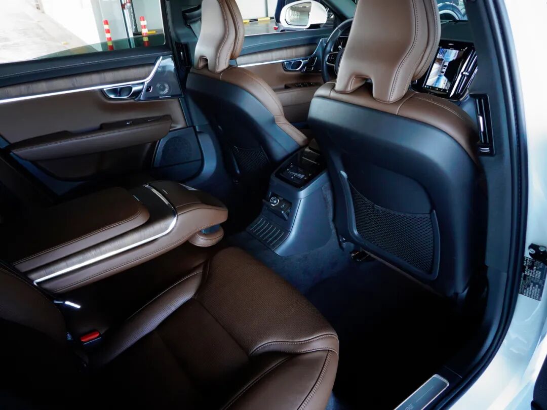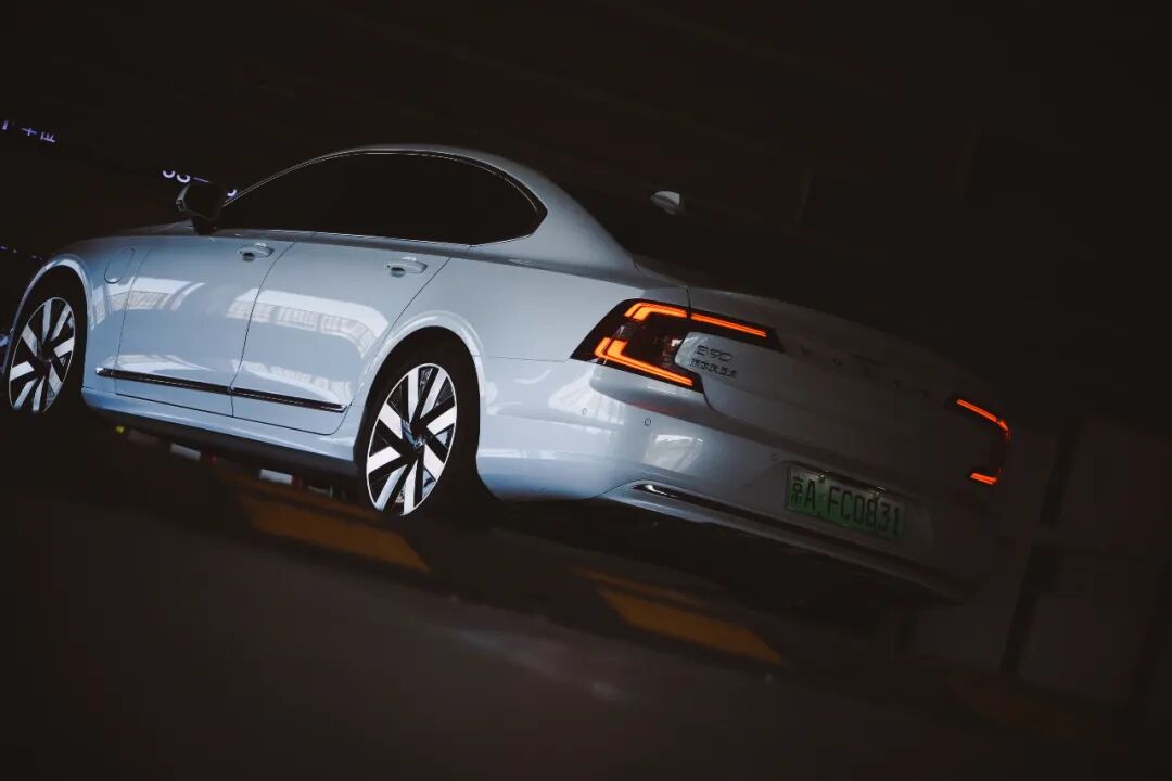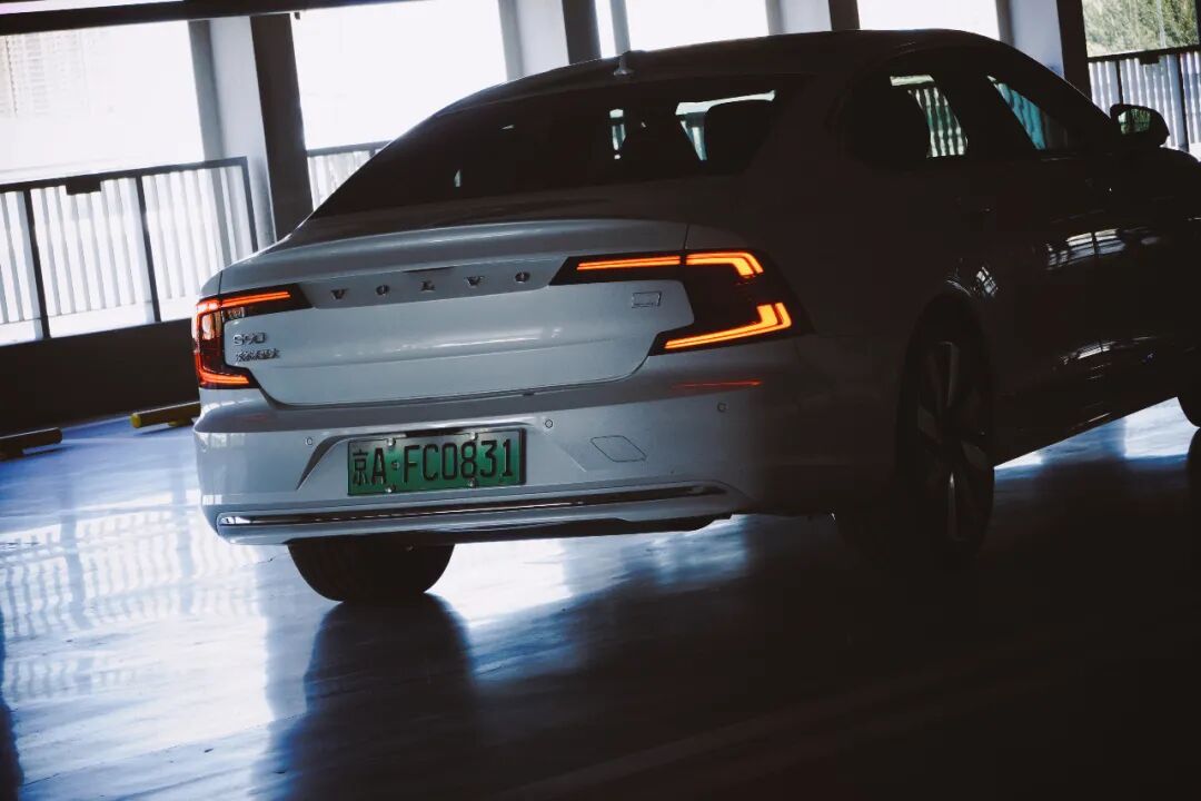 今天跟各位分享一台沃尔沃S90,通过车辆牌照的颜色可以清晰的分辨出这是一台T8的插电式混合动力版本。