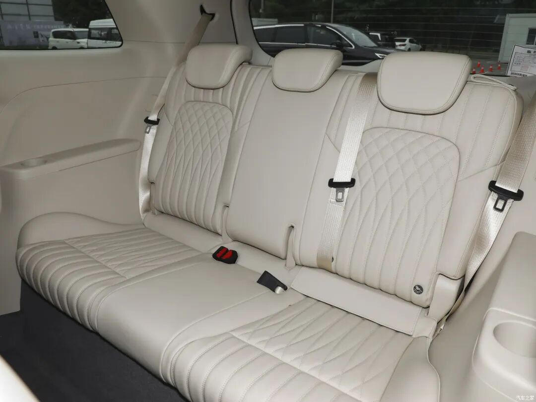 第三排的三个座椅均配备有独立头枕,两侧还有杯架。座椅靠背支持按比例放倒以扩展后备厢空间。