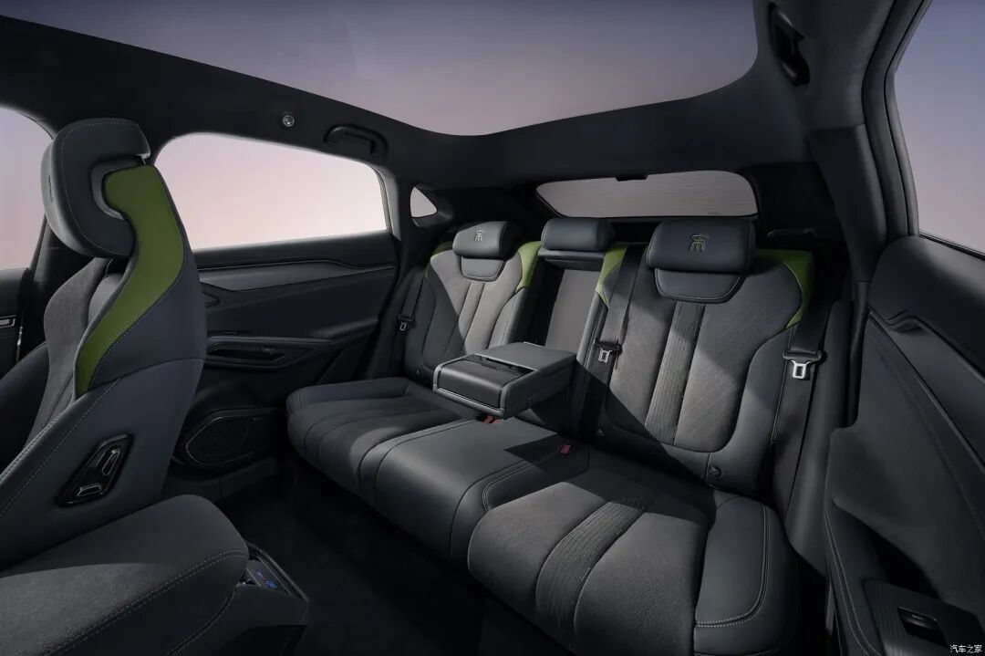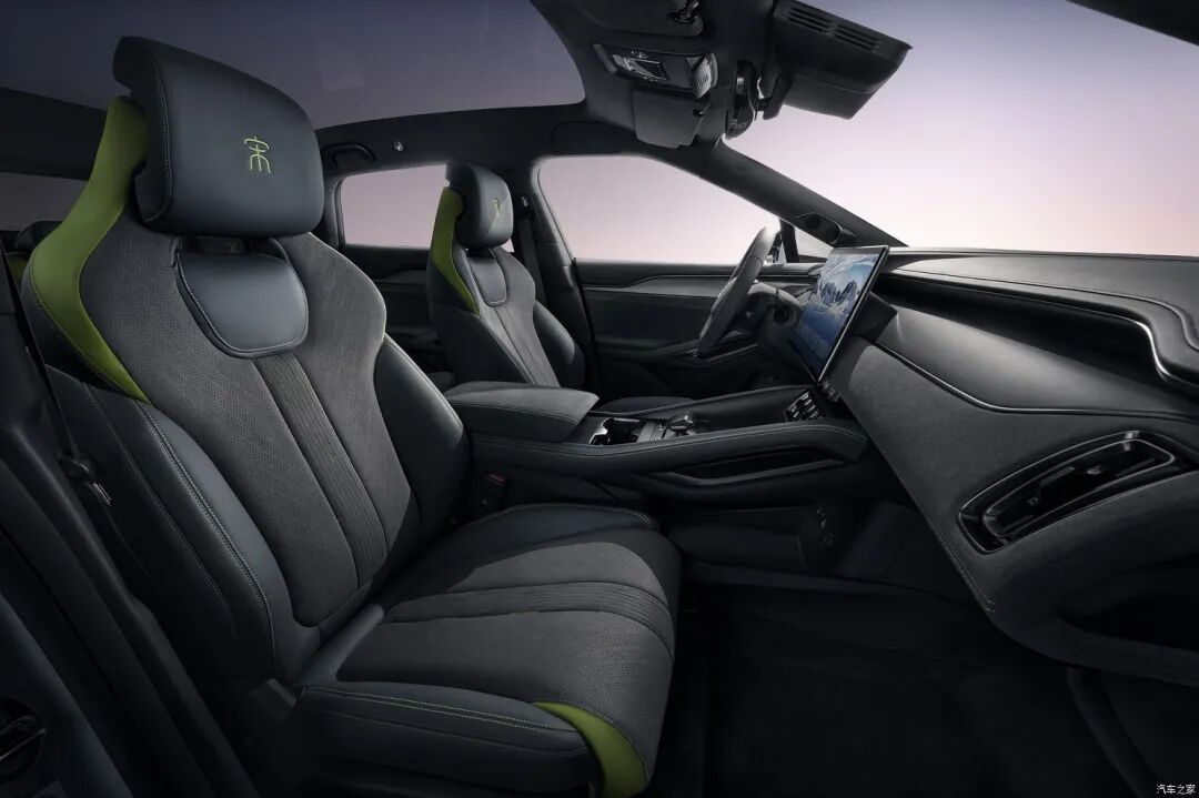 新车采用“动势交错美学”的极简设计风格,层叠交错的中控台线条让这款车看上去层次感丰富。同时,经典的可旋转中控屏以及大尺寸液晶仪表依旧没有缺席。此外,BYD Heart采用水晶切割工艺,按键集成在换挡杆周围,整体营造出不错的高级感。值得一提的是,新车将拥有专属旷野星空内饰风格,深邃灰调点缀荧光绿,搭配翻毛皮材质,大大提升车辆品质感。
