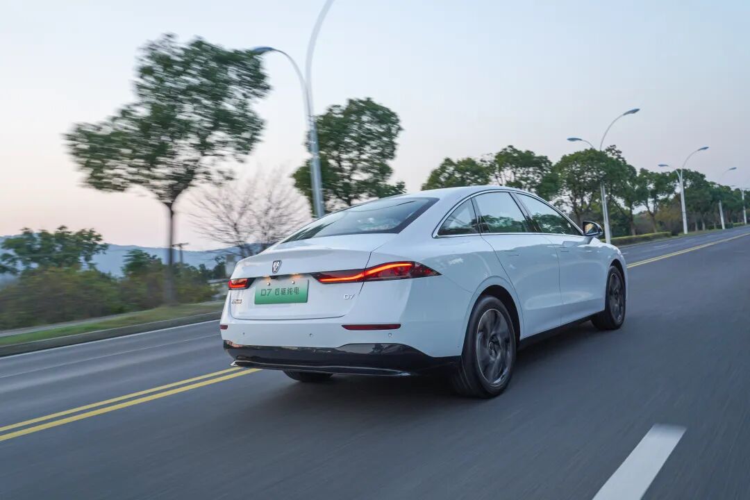 底盘设定,首先悬架的硬件部分要给予好评,前后均为独立式悬架。实际给到的反馈,紧致的底盘质感富有一定的高级感,尤其是EV车型,在过较大颠簸路段时,也舒适性可以确保,加之柔软的座椅,多数振动都能被有效稀释。D7悬架行程偏短,再加上本身偏低矮的造型,便使其拥有了一个相对较低的车身重心,抗侧倾能力不弱。