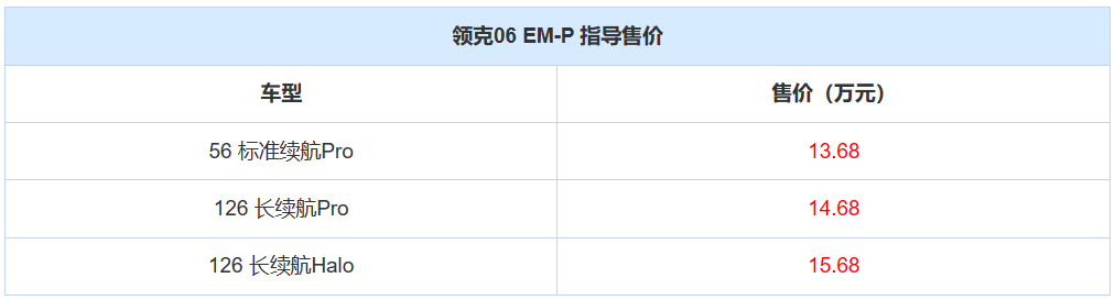 11月5日,领克06 EM-P正式上市,新车共推出3款配置车型,官方售价区间为13.68-15.68万元。另外,官方推出限时领享价,全系车型下订享4000元领享金,优惠后限时售价为13.28-15.28万元。领克06 EM-P定位为一款小型SUV,采用都市对立美学设计语言打造,拥有更强的视觉冲击力,CLTC工况纯电续航126km,CLTC工况综合续航1280km。