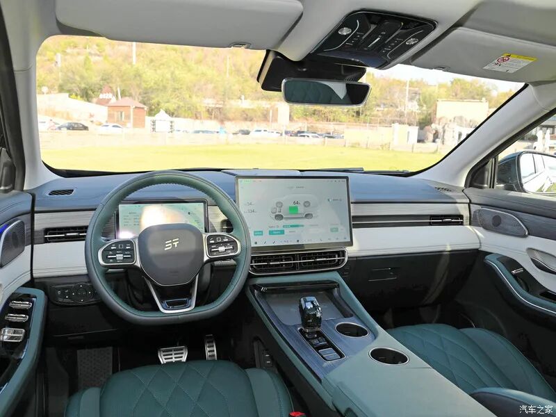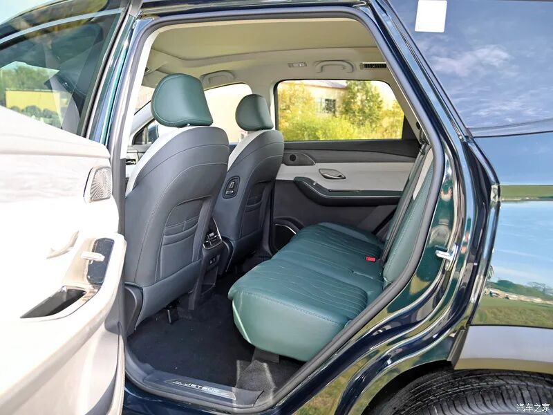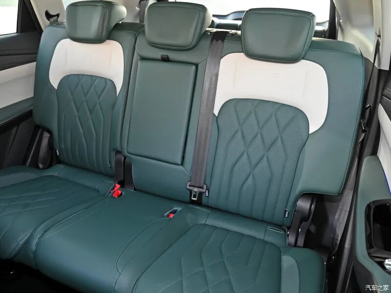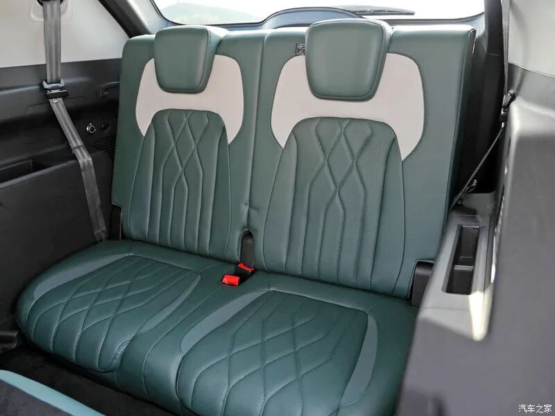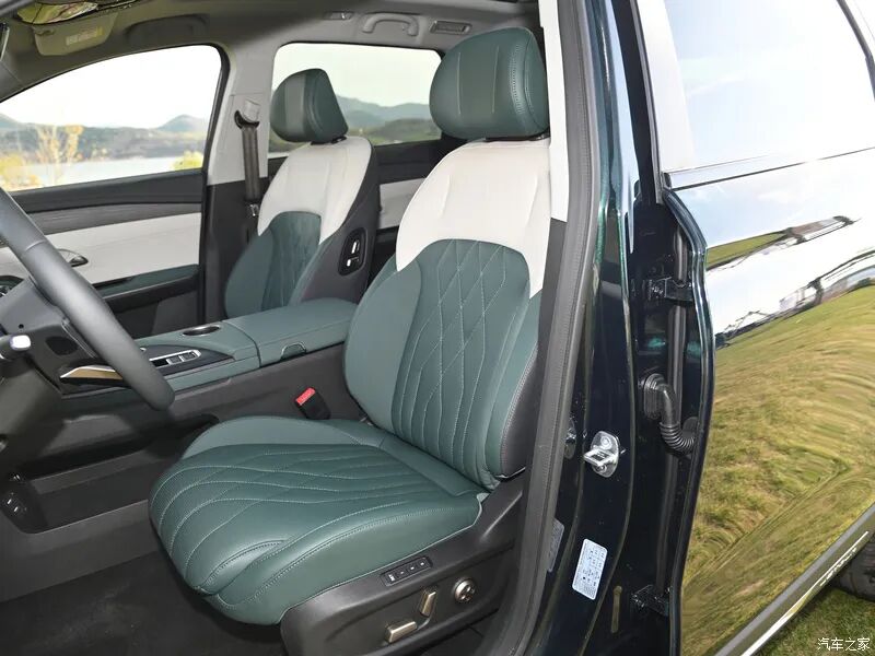 实拍车型的这套内饰配色叫春绿,座椅采用拼接配色,搭配缝线勾勒出的菱形纹理质感比较出色。配置上,电动调节、加热、通风、驾驶位座椅记忆和副驾驶“老板键”都没有缺席。