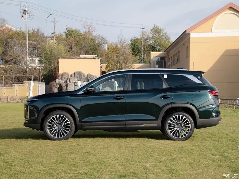 侧面设计饱满有力,侧窗上沿点缀有粗壮银色装饰以提升质感。锐利的腰线在后门位置进行上挑,搭配侧裙附近的内凹设计,呈现出更强的力量感和光影效果。