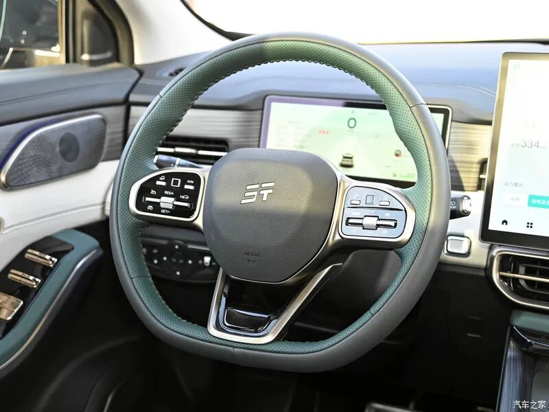 多功能方向盘设计风格多少有些似曾相识的感觉,双色搭配可以提升档次感。左侧按键主要控制驾驶辅助系统,右侧按键主要控制多媒体和语音助手。