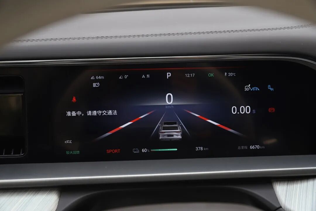 10.25英寸全液晶仪表界面简洁深邃,可以显示的信息也相当丰富。除了时速、驾驶模式、胎压、能量流等行车信息外,还可以显示导航地图(可选小屏/全屏)、媒体源、加速计时器等内容。