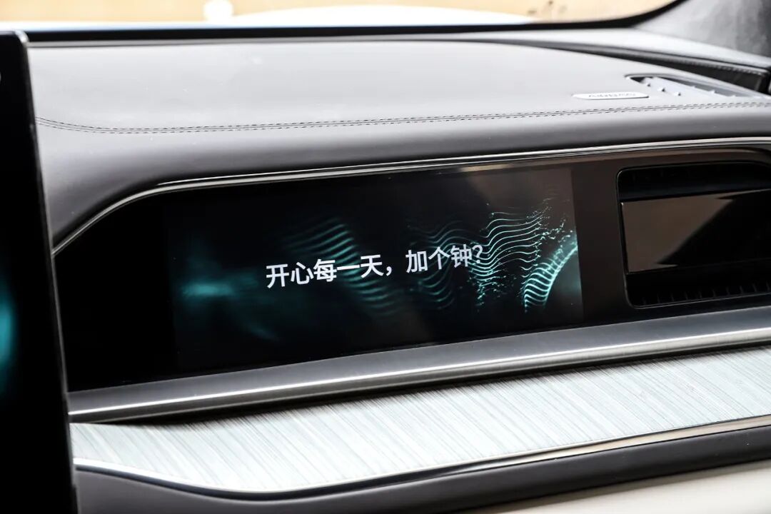 值得一提的是,副驾屏幕可以设置迎宾问候语,设置好话术,副驾乘客上车后便会在屏幕显示问候语,算是一个小彩蛋功能。