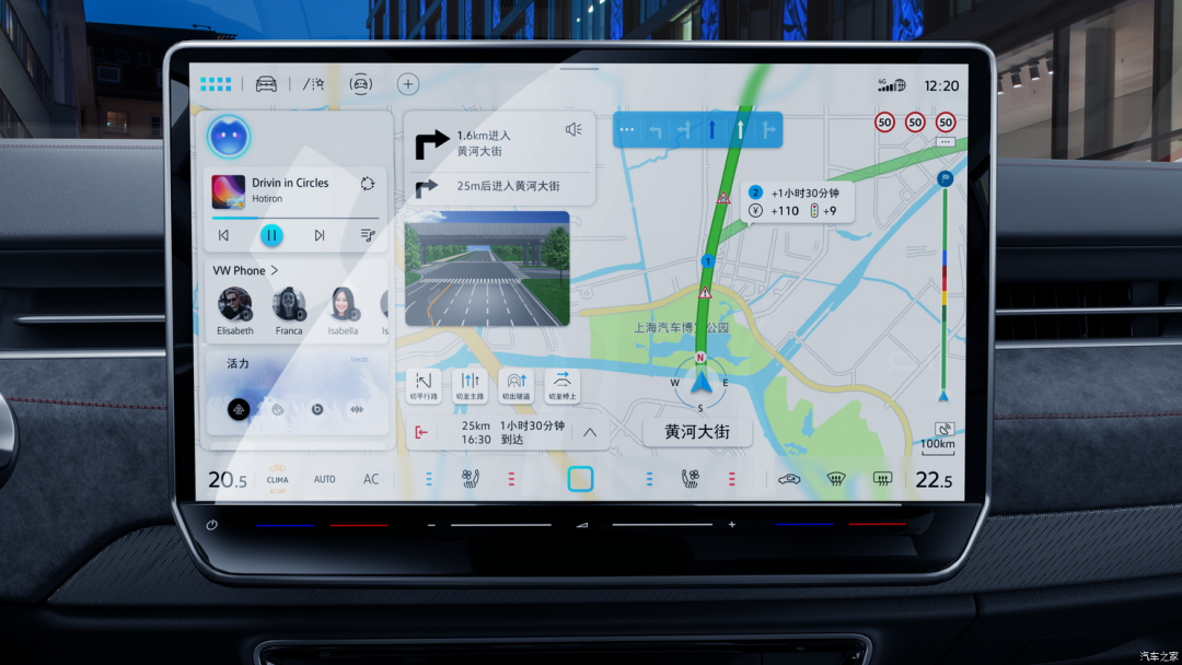 驾驶辅助系统方面,该车会配备Travel Assist 3.0,驾驶员可通过方向盘左侧快捷按钮开启/关闭驾驶辅助功能,当功能开启时,MFK高清摄像头会时刻采集行驶车道的标识线,通过图像处理获得汽车在当前车道中的位置参数,持续地进行横向控制。同时,结合ACC控制器进行纵向车速控制:当无前车时,按设定的车速行驶;当有前车时,按前车速度或指定距离跟随。当驾驶员拨动转向拨杆时,系统会判断周围环境是否安全,并在合适时机自动完成变道动作。