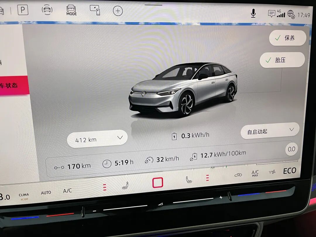 相比于同价位燃油车而言,静谧性应该是电动车在舒适性方面的一个杀手锏,并且ID.7 VIZZION前排还配有双层加胶玻璃,故其表现也是没得说。关于能耗方面,经过一天的试驾,包含拥堵路段、城市快速路、高速公路各类路况,最终的能耗为12.7kWh/100km,很可以了。