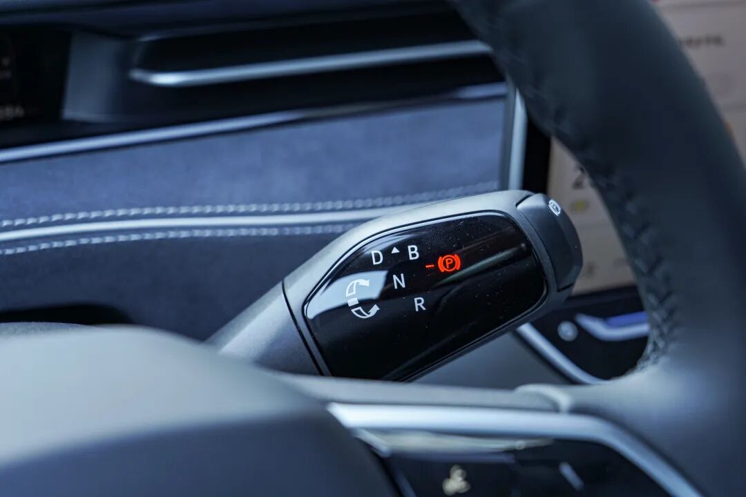 方向盘是大众ID.系列家族化的造型,原先集成在仪表屏右侧的旋钮式挡把在ID.7 VIZZION上变为了类似怀挡式的设计,不过旋钮D/R换挡方式以及P挡按键的操作方式与此前车型仍然是一样的。